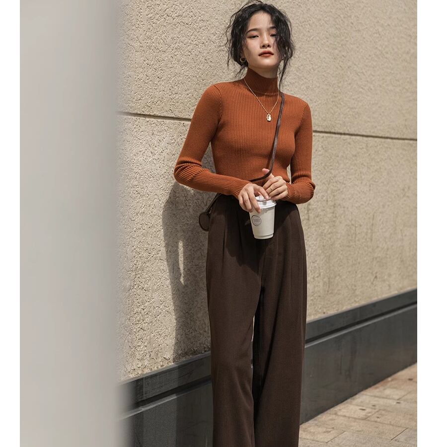 レディース ニット トップス ハイネック セーター シンプル タイト S M L オレンジ ブラウン ブラック ブルー ホワイト AS10604