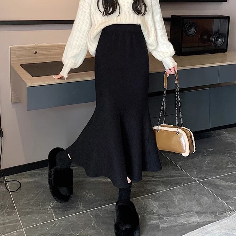 レディース ハイウエスト マーメイド ロングスカート S M L 黒 ブラック AS10630