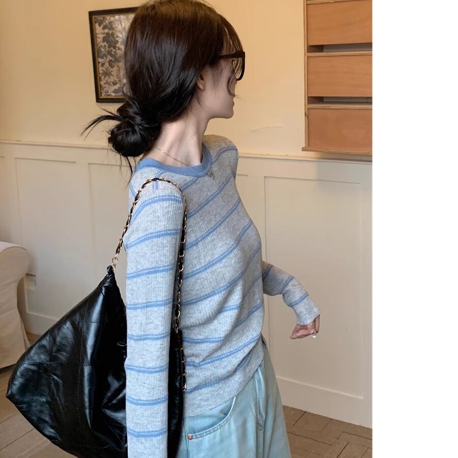 ボーダー柄が程よいカジュアル感のあるセーター。