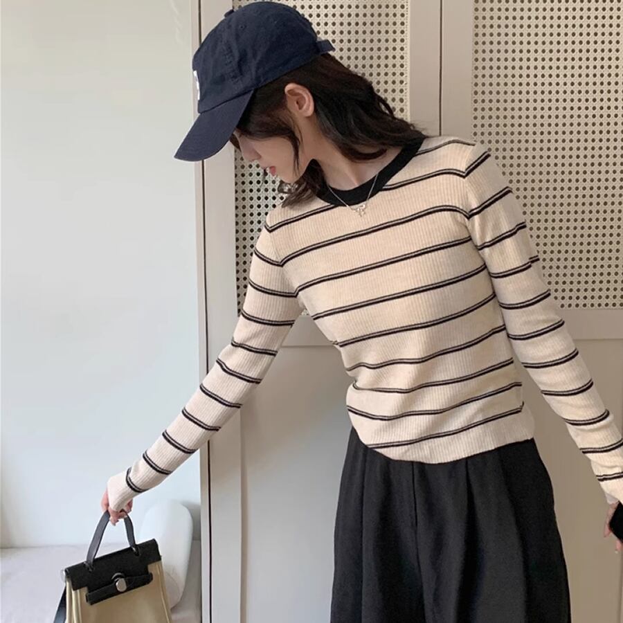 レディース ボーダー セーター 長袖 S M L XL グレー アプリコット AS10635