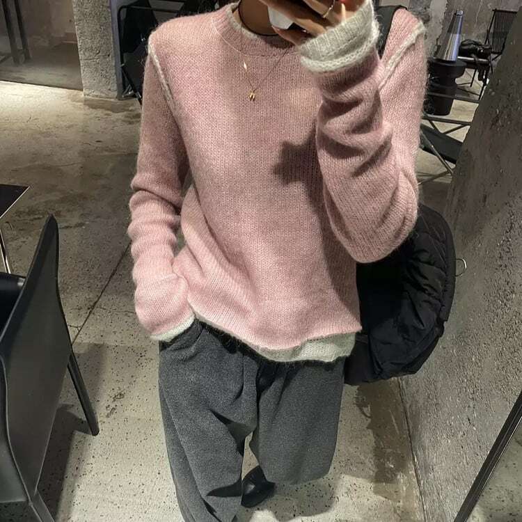 レデイース トップス レイヤード モヘヤ ニット 長袖 2Collar KS10282