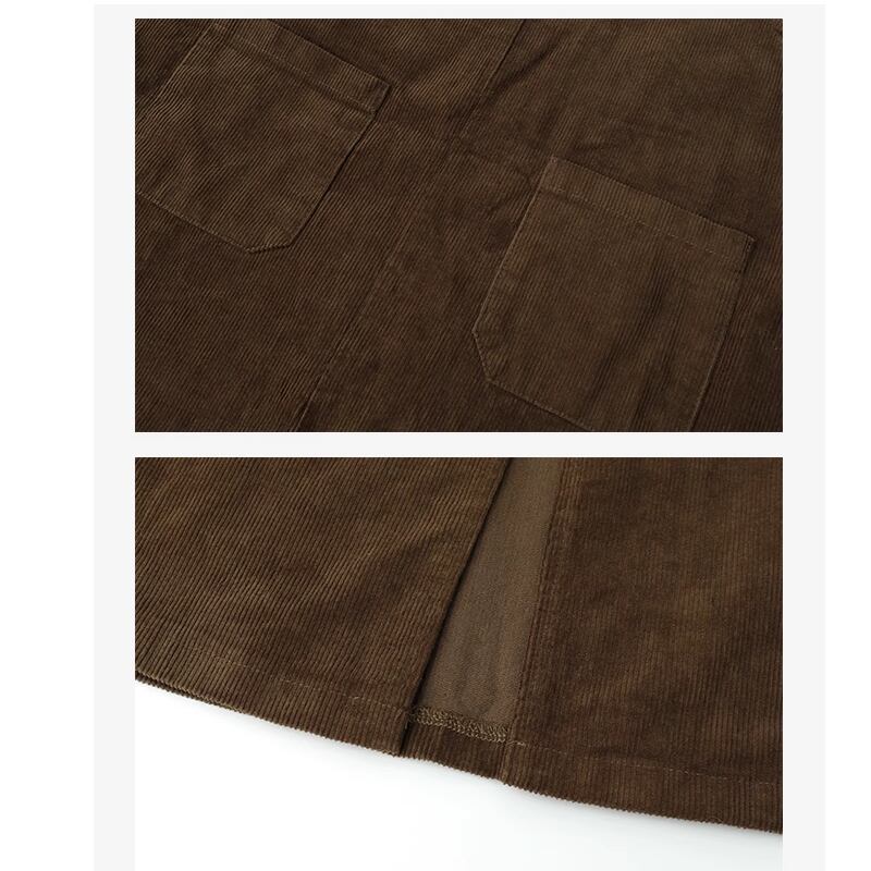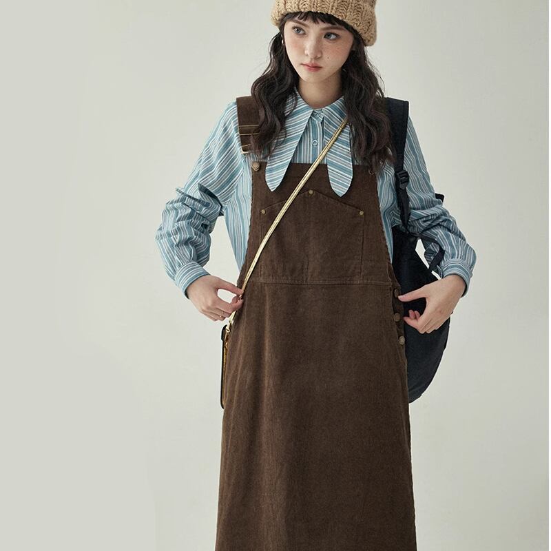レディース コーデュロイ ジャンパースカート サスペンダースカート ロング丈 レトロ S M L ブラウン AS10646