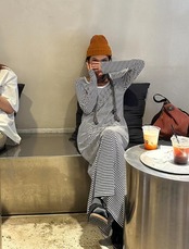 レディース ストライプバックレス長袖 ロング ワンピース 2color KS10293