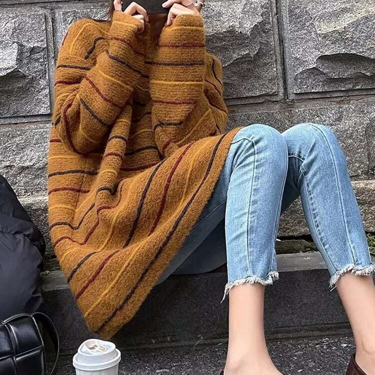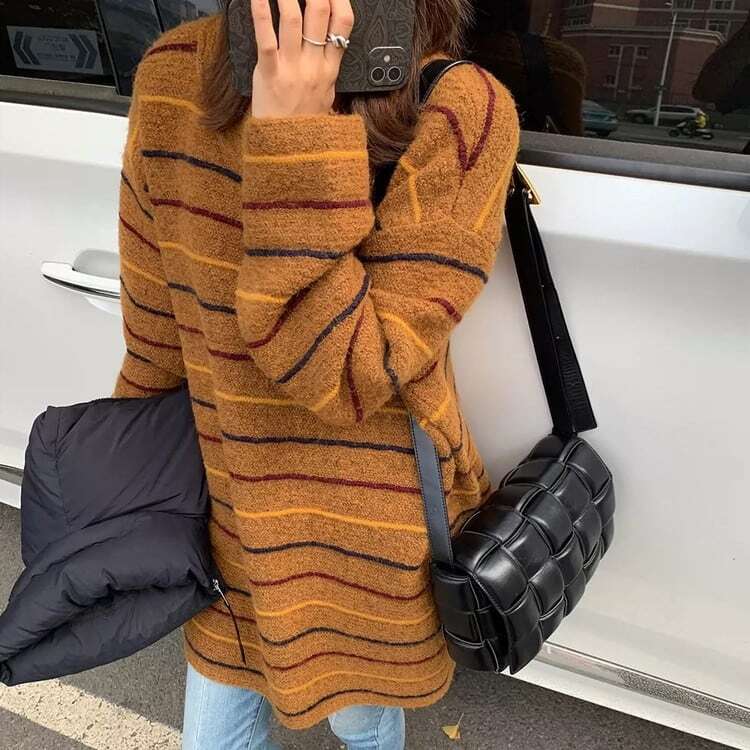 ゆるっとオーバーサイズのマルチボーダーニットです。