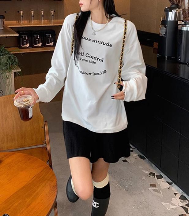 レディース トップス ロゴ ロング Tシャツ 長袖 ゆったりシルエット KS10307