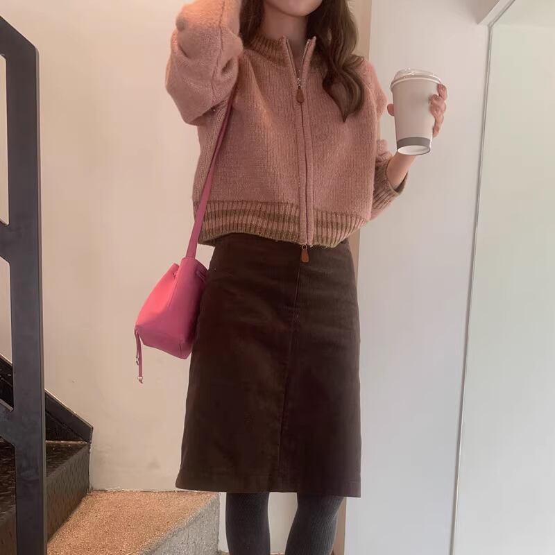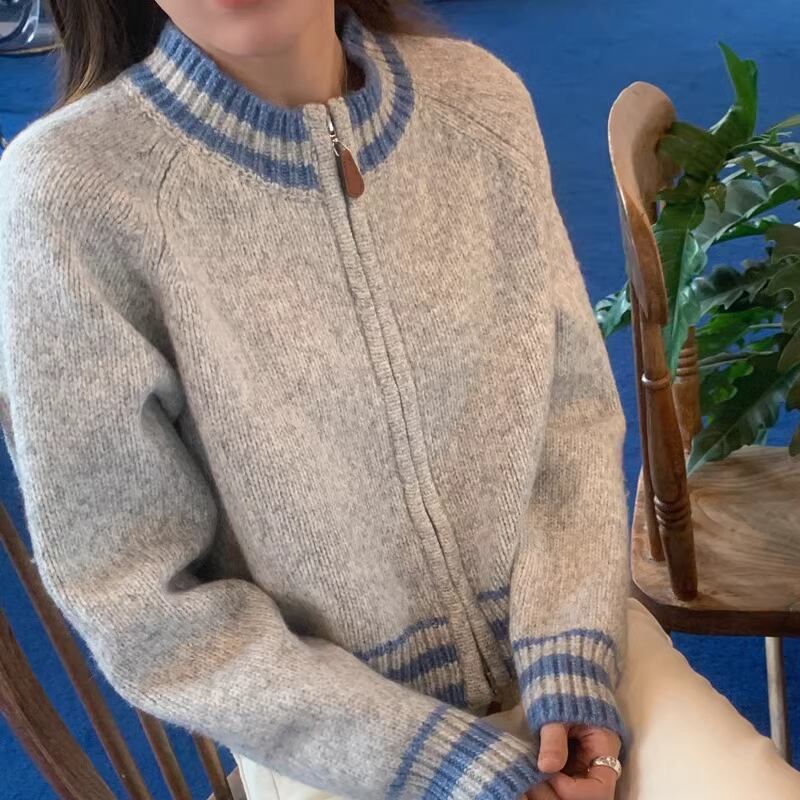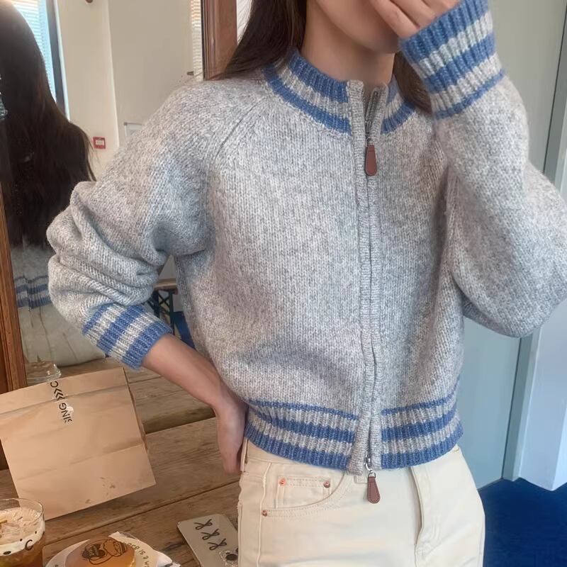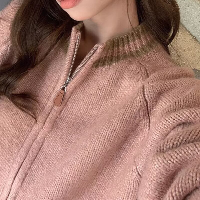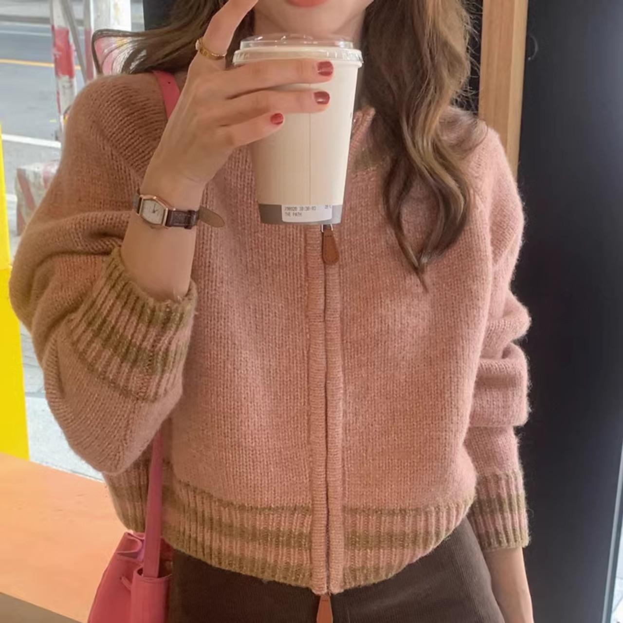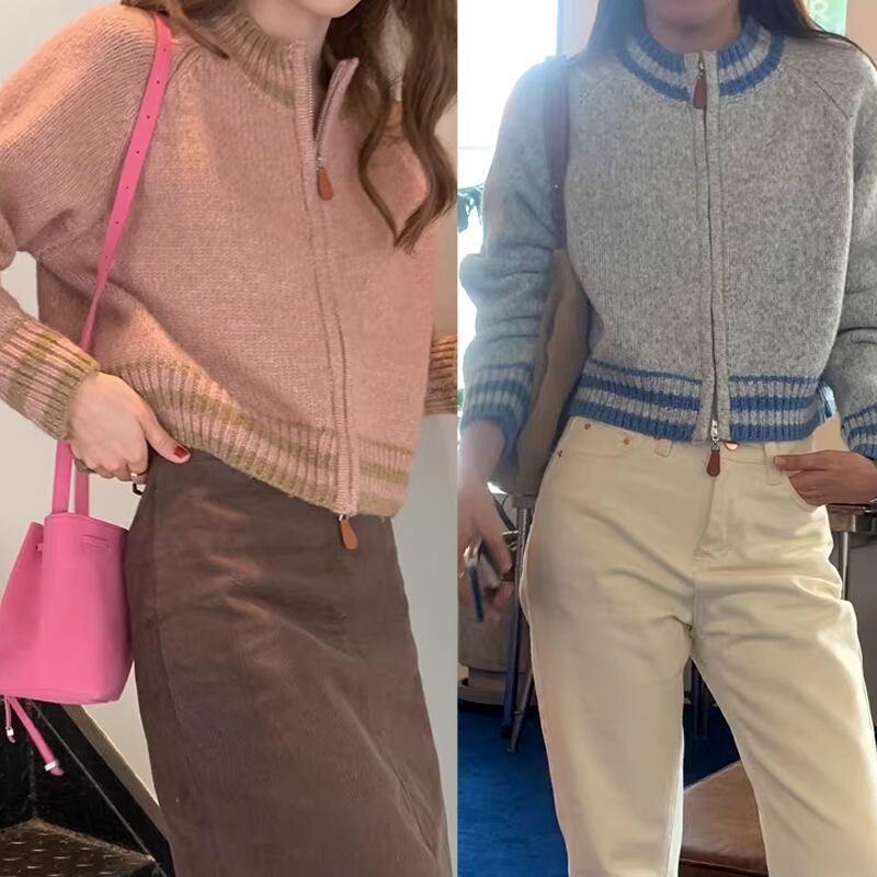 レディース ライン ジップ カーディガン ショート丈 ピンク グレー AS10675