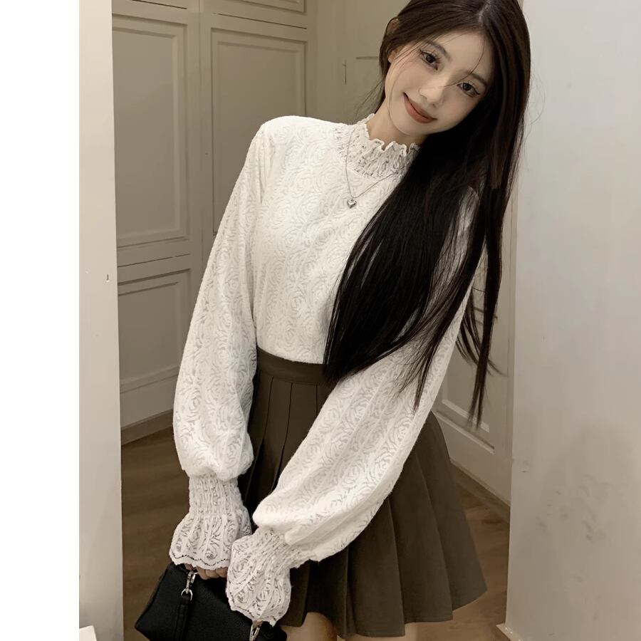 大人可愛いコーデにピッタリのレースブラウス。