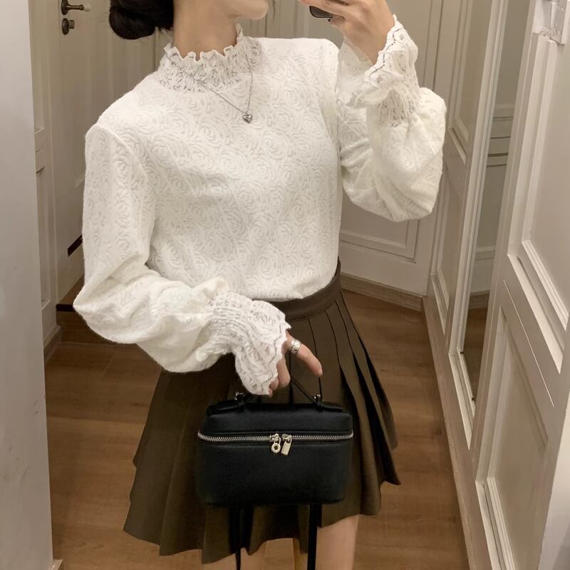 レディース レース フリル ブラウス 長袖 白 ホワイト AS10702