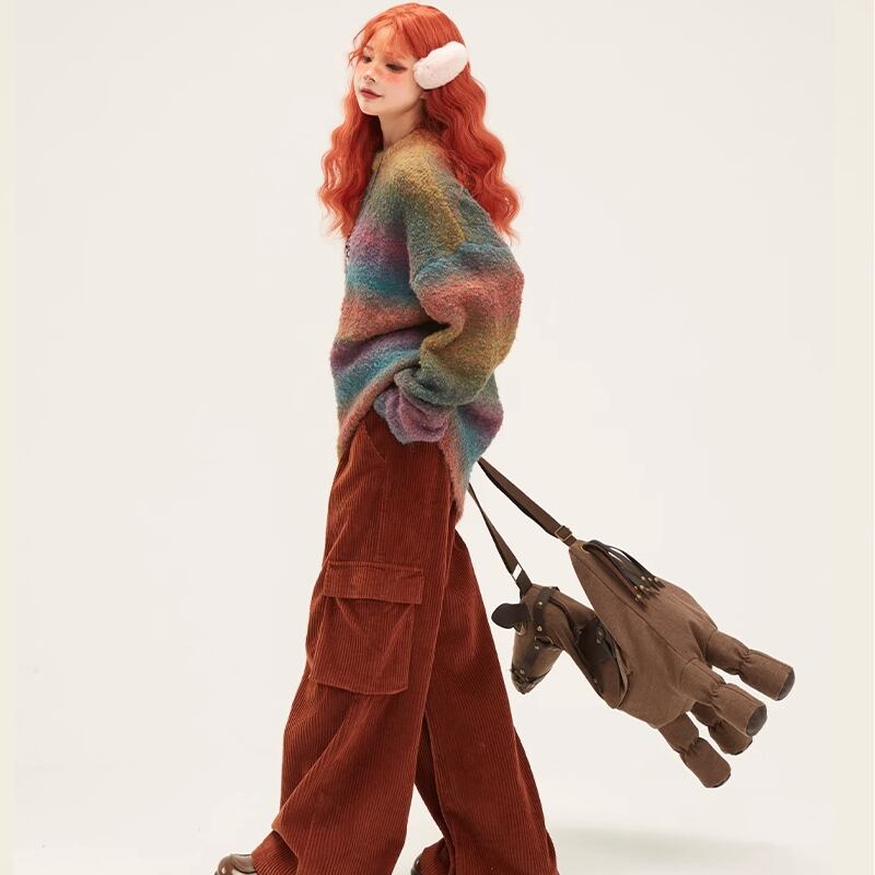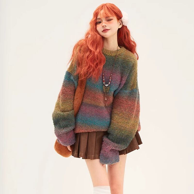 レディース グラデーション カラフル セーター 長袖 レインボーカラー AS10707