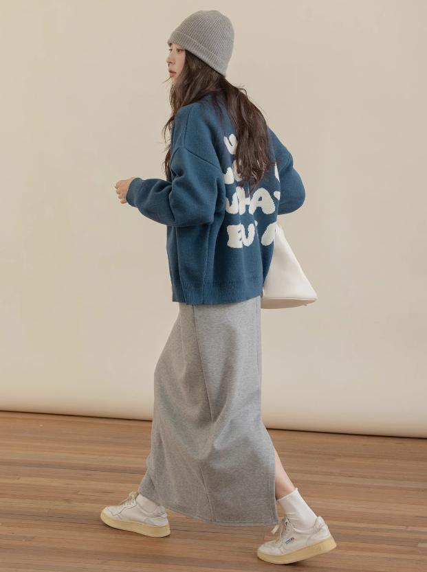レディース トップス カーディガン セーター ドロップ ショルダー レター ジャケット 3Collar KS10319