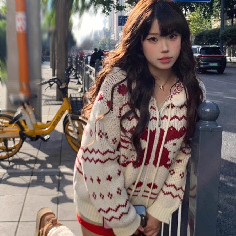 秋冬コーデに着映えるノルディック柄がレトロでかわいいカーディガン。