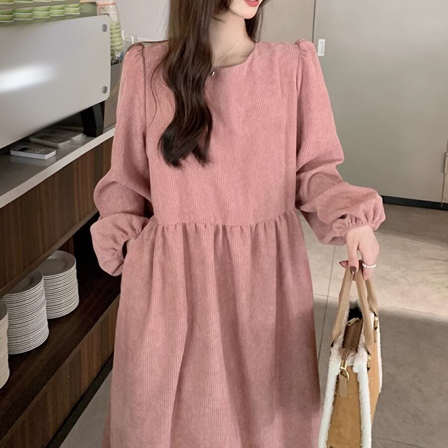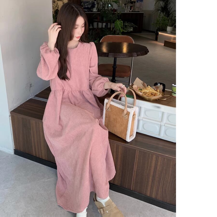 レディース コーデュロイ ワンピース 長袖 ロング丈 グリーン ピンク AS10726