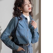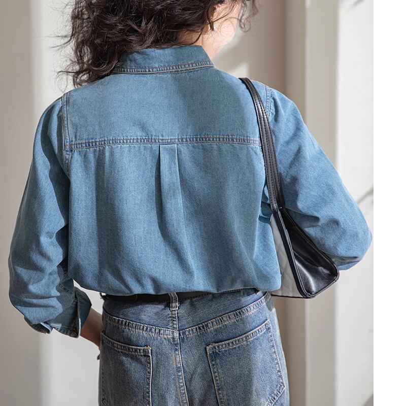 レディース シャツ デニム 長袖 レトロ S M L XL ブルー AS10732