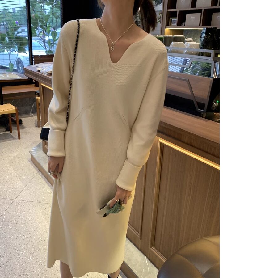 1枚着でスタイリングが完成するニットワンピース。