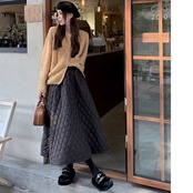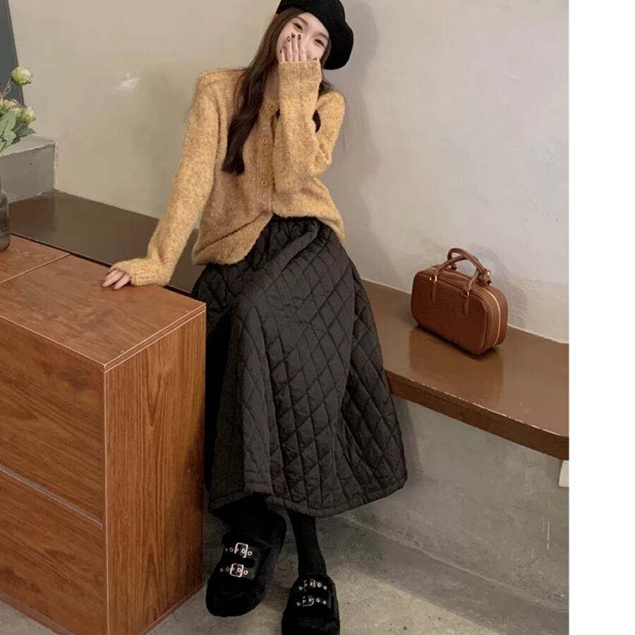 レディース キルティングスカート ロング丈 カーキ ブラック AS10749