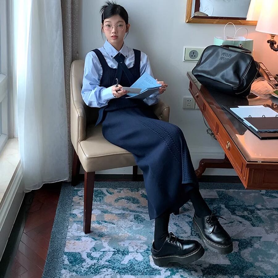 レディース ニット ジャンパースカート ロング丈 S M ネイビー AS10757