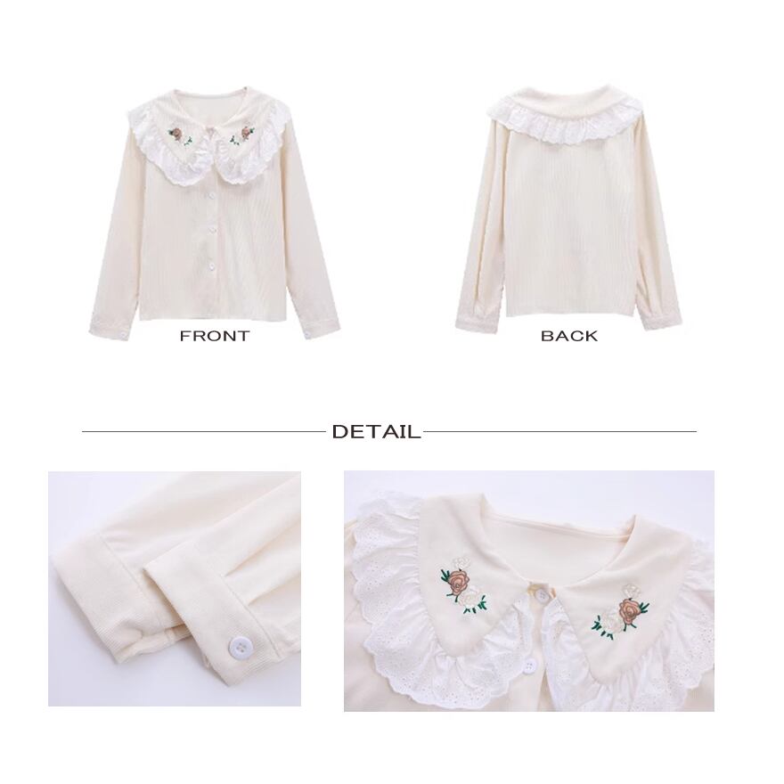 レディース ビッグカラー フリル ブラウス 長袖 刺繍 アプリコット AS10765