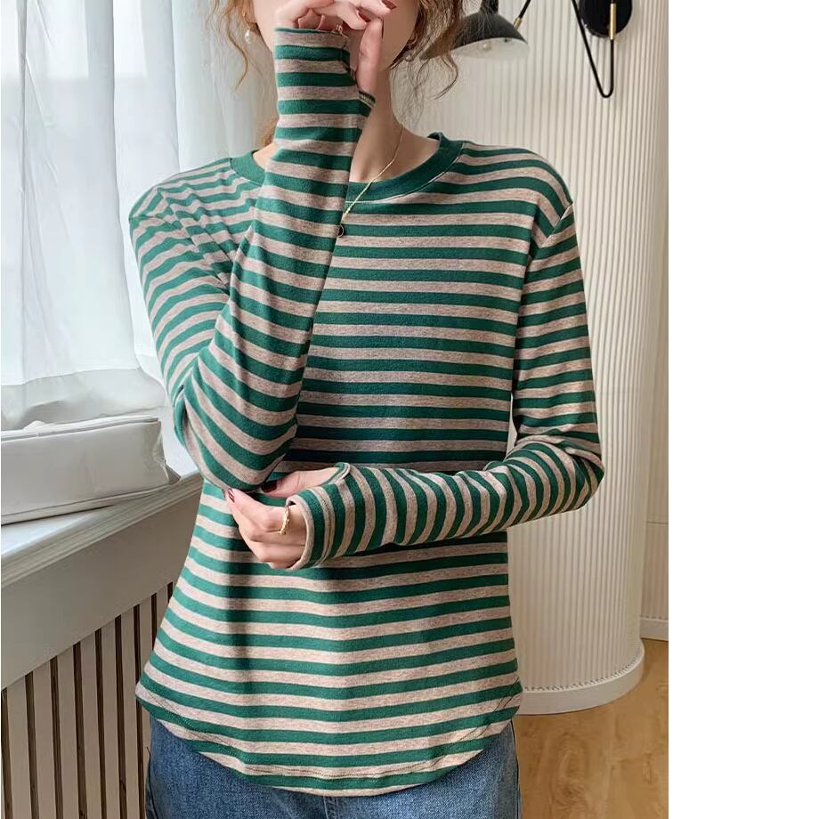 レディース 指穴 ボーダー トップス カットソー 長袖 S M L XL グリーン ブラック パープル AS10768