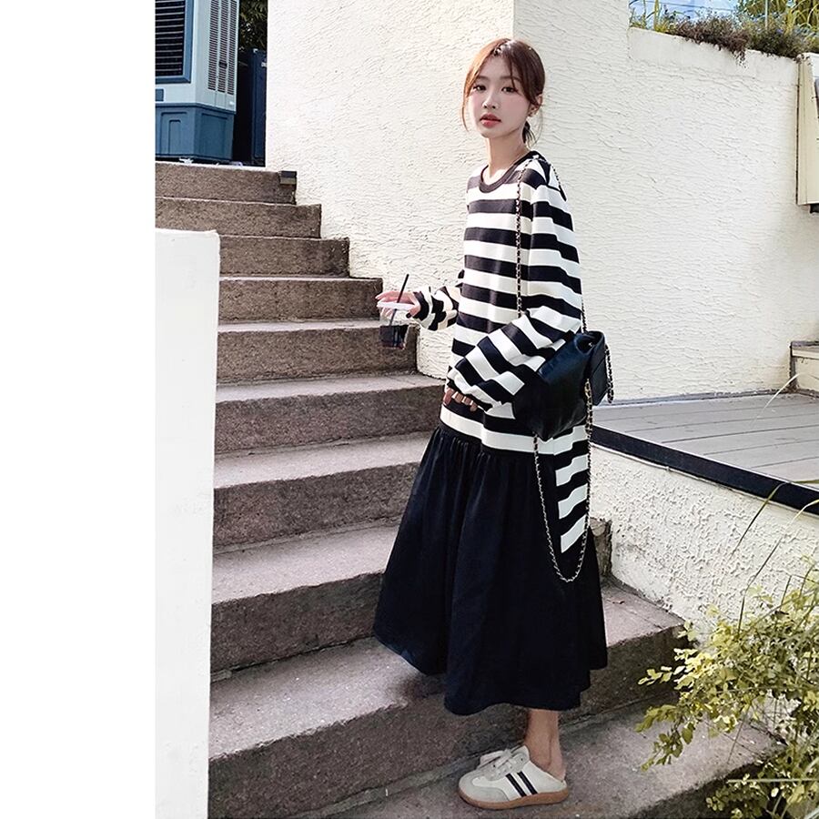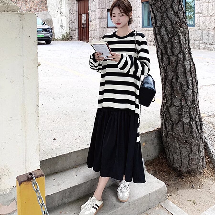 ボーダーのロングワンピース。