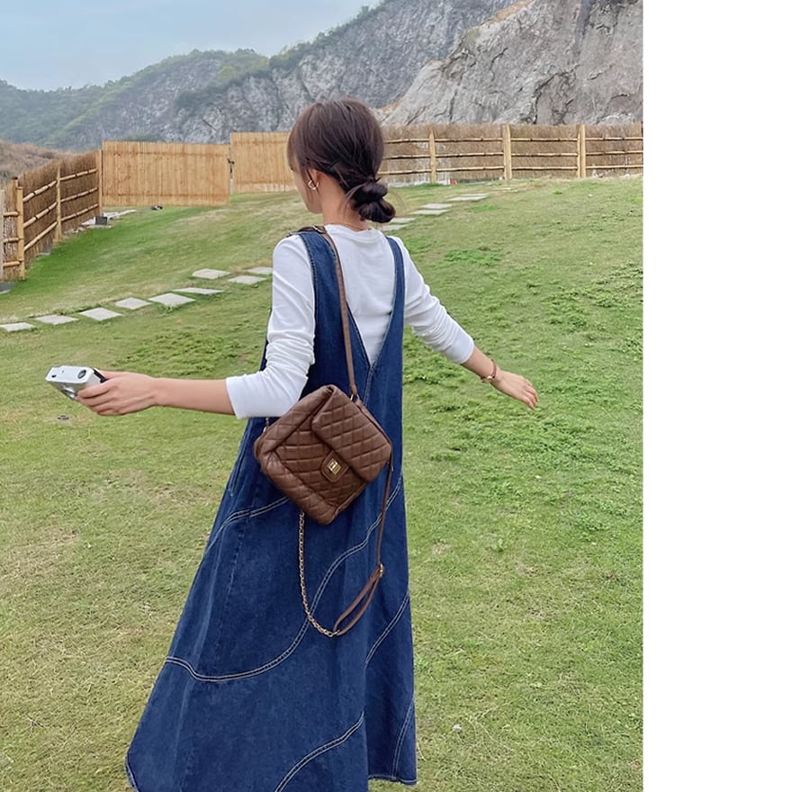 レディース デニム ジャンパースカート ロング丈 S M L XL ブルー AS10772