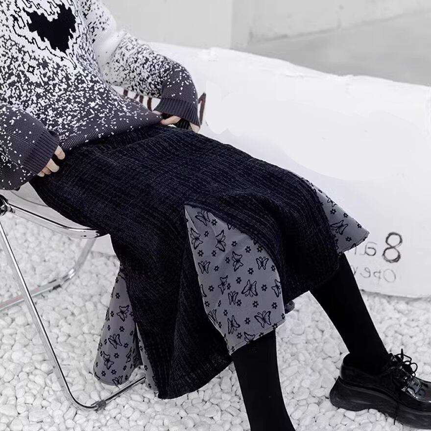 レディース 蝶 バタフライ ツイード スカート ロング丈 マーメイド S M L ブラック AS10788