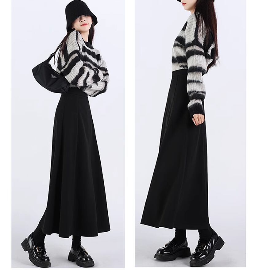 レディース スカート ロング丈 シンプル ハイウエスト S M L XL 2XL ブラック グリーン AS10789