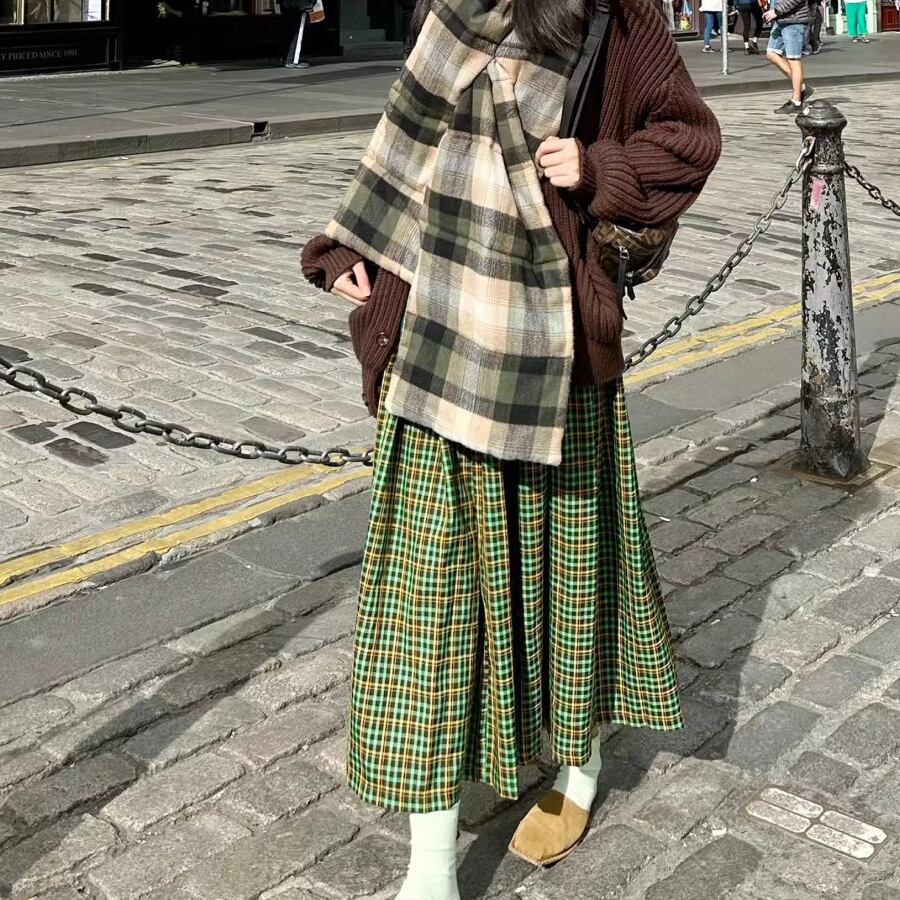 レディース スカート ロング丈 チェック柄 ハイウエスト S M L グリーン AS10790