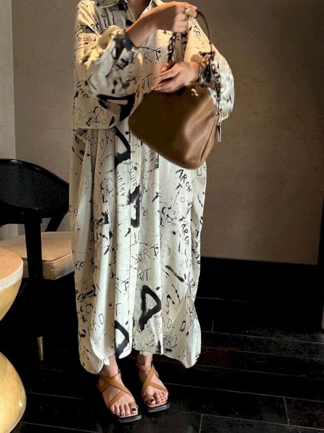 レディース ワンピース プリント ロング丈 シャツワンピース 2Collar KS10331