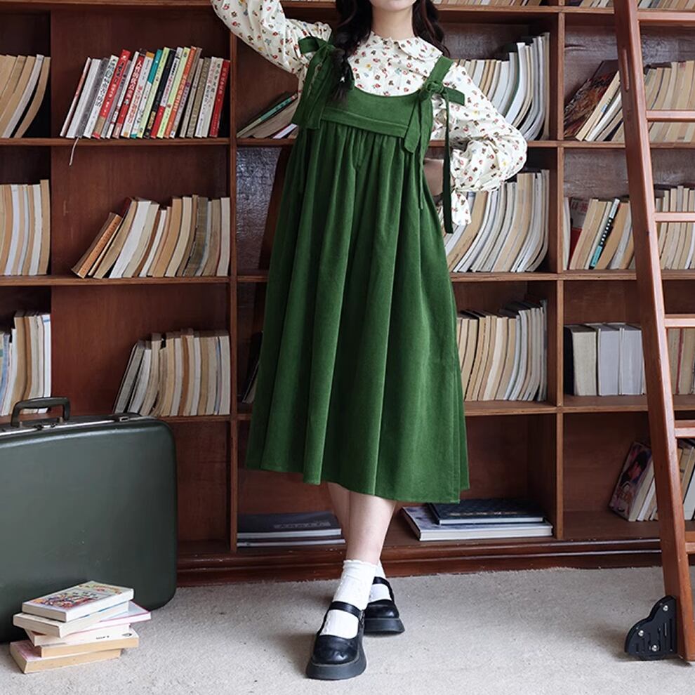 レディース リボン ジャンパースカート レトロ XL 2XL 3XL 大きいサイズ グリーン AS10802