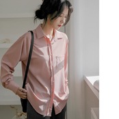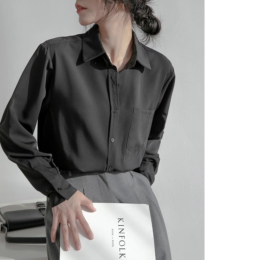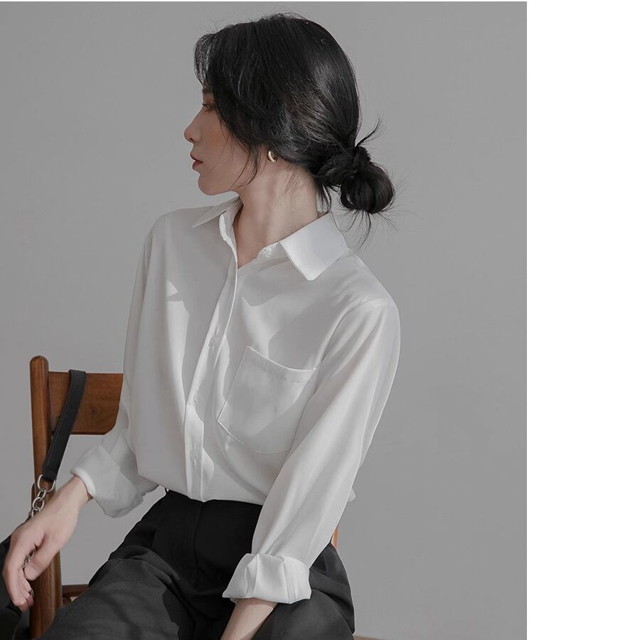 レディース シャツ シンプル トップス 長袖 S M L ホワイト ピンク ブラック パープル ブルー AS10830