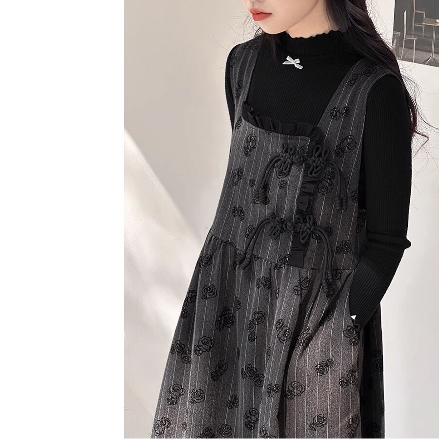 上品なバラ柄のジャンパースカート。
