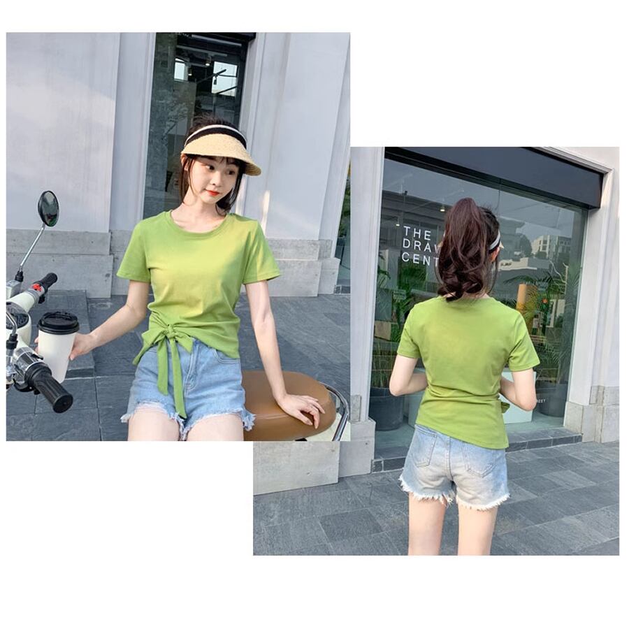 レディース 裾リボン T シャツ 半袖 S M L XL ホワイト ブラック ピンク イエロー グリーン AS10848