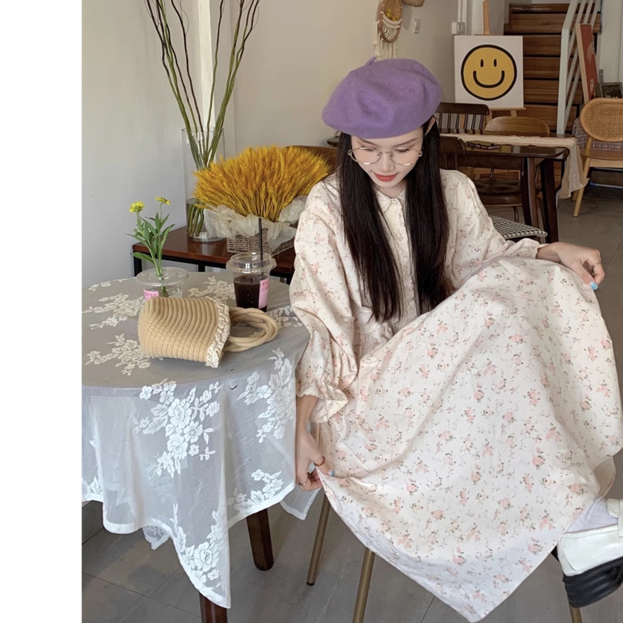 レディース ワンピース 長袖 バックリボン 花柄 ロング丈 S M L XL ピンク AS10863