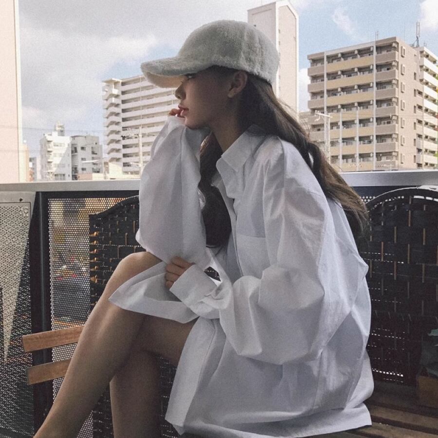 レディース シャツ 長袖 オーバーシルエット S M L XL ホワイト AS10885