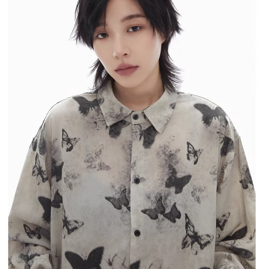 一枚で存在感を発揮してくれるバタフライ柄シャツ。