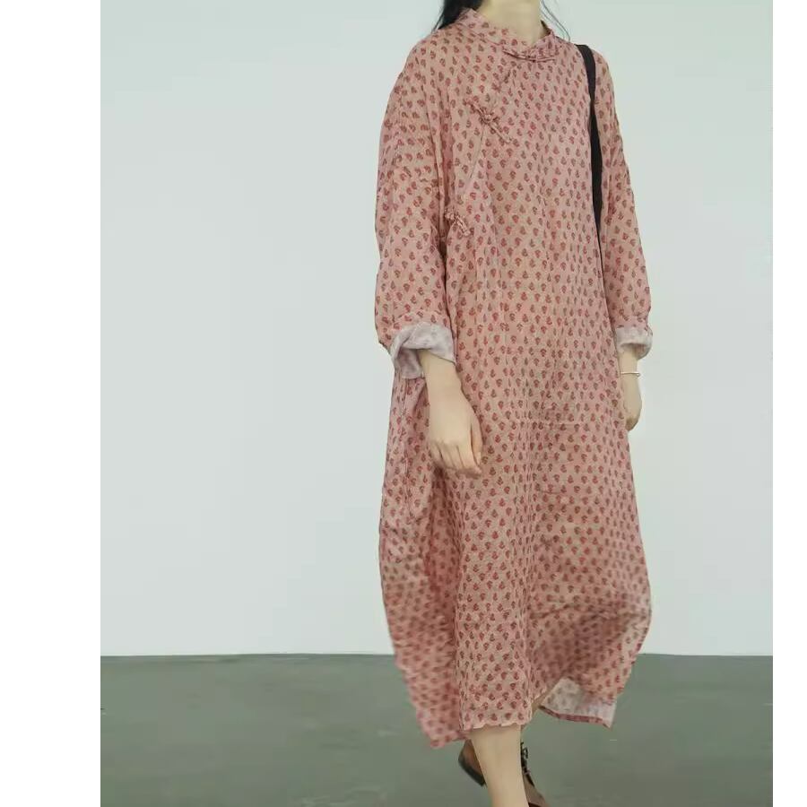 レディース チャイナ ワンピース 長袖 ロング丈 M L XL 2XL 花柄 AS10900