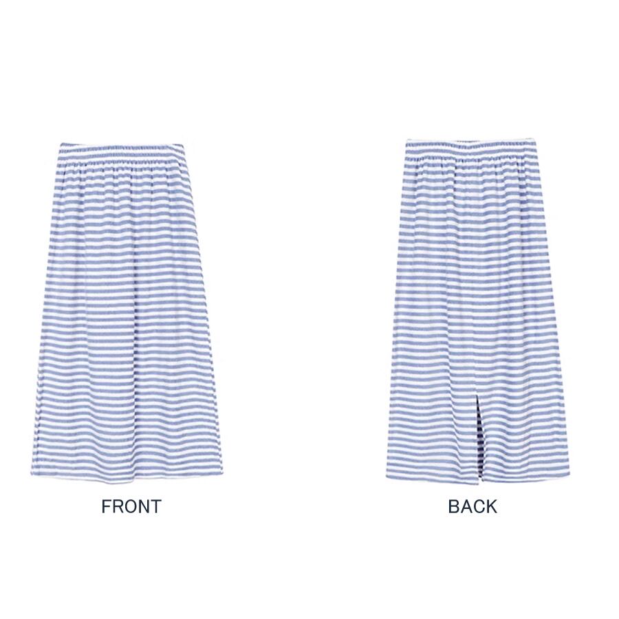 レディース ボーダー柄 コットン ロング丈 スカート バックスリット S M L 青 ブルー AS10903