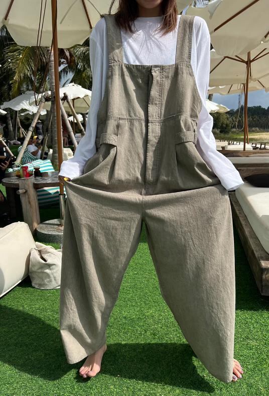 こなれ感のあるウォッシュドコットンワイドサロペットです。