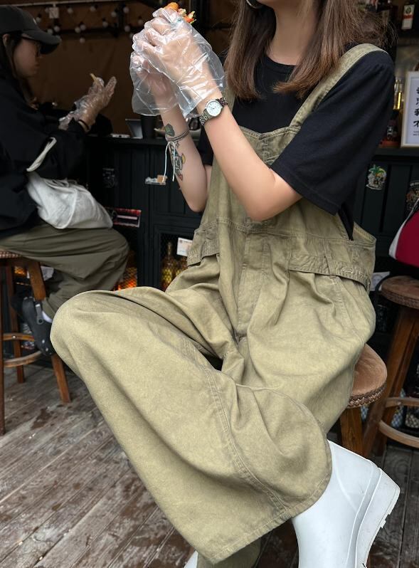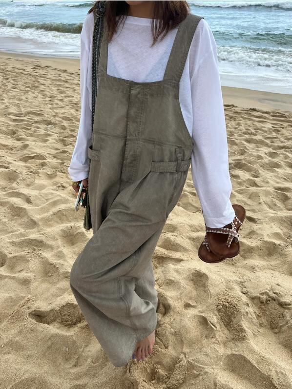 レディース ウォッシュド コットン ワイド レッグ サロペット オーバーオール 2color KS10337