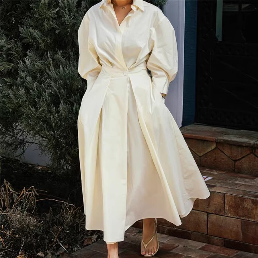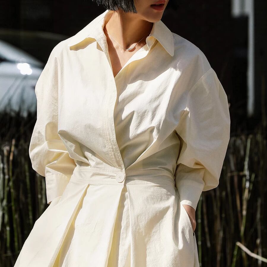 レディース シャツワンピース ロング丈 オーバーシルエット 長袖 S M L XL ベージュ ブラック AS10912