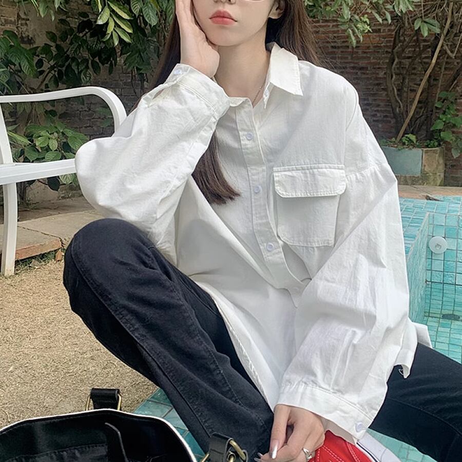 レディース コットン シャツ 長袖 ロング丈 シンプル S M L XL 2XL 白 ホワイト AS10941