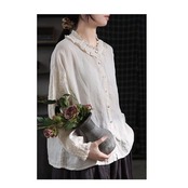 レディース フリル リネン ブラウス レトロ ホワイト AS10966