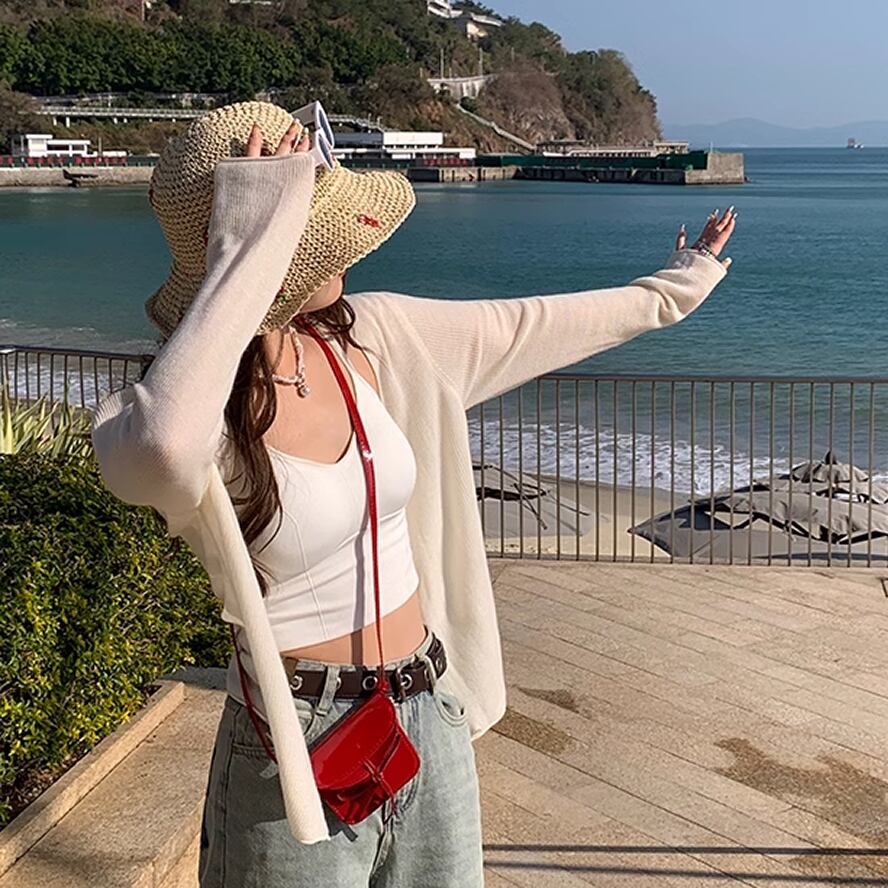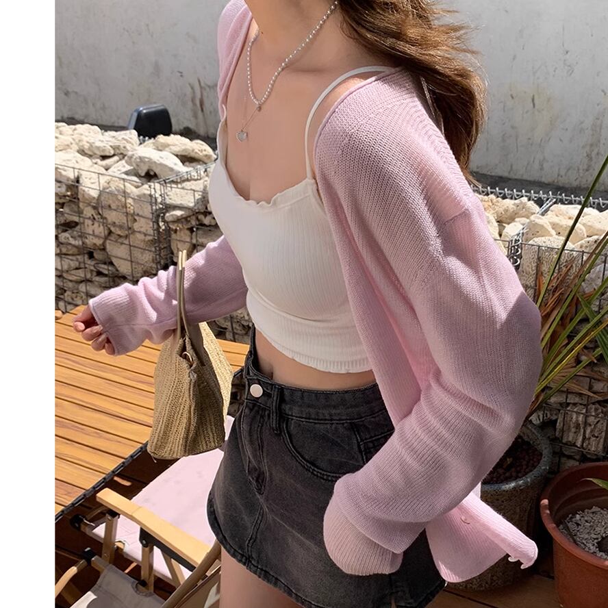 レディース カーディガン サマーニット 長袖 S M L XL ブルー ホワイト ピンク ブラック AS10972