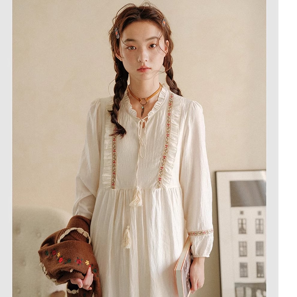 レディース ワンピース 長袖 ロング丈 エスニック S M L レトロ AS11015