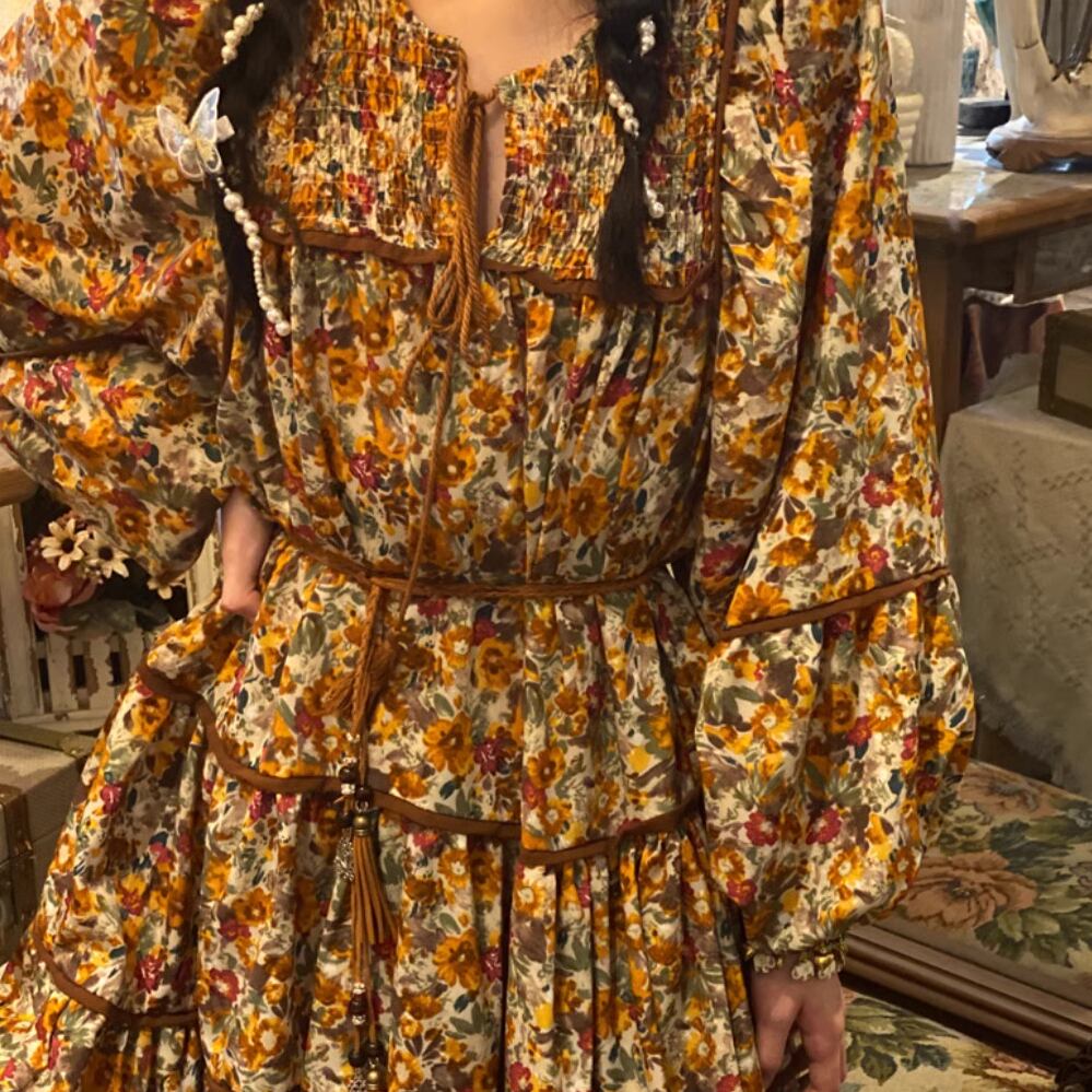 レディース 花柄 レトロ 長袖 ワンピース ミニ丈 AS11021