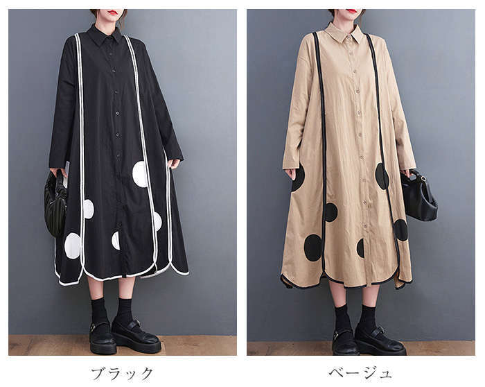 レディース ワンピース シャツワンピース マキシ丈 膝下丈 大人 長袖 着痩せ 体型カバー 体型隠し カジュアル シンプル 無地 KS10380