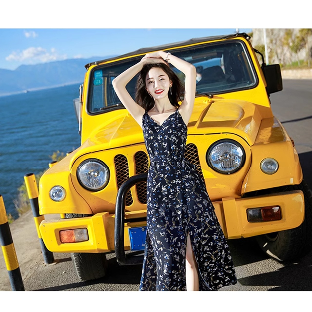 レディース 花柄 キャミソールワンピース サイドスリット サマードレス ビーチドレス S M L XL ブルー ピンク AS11048