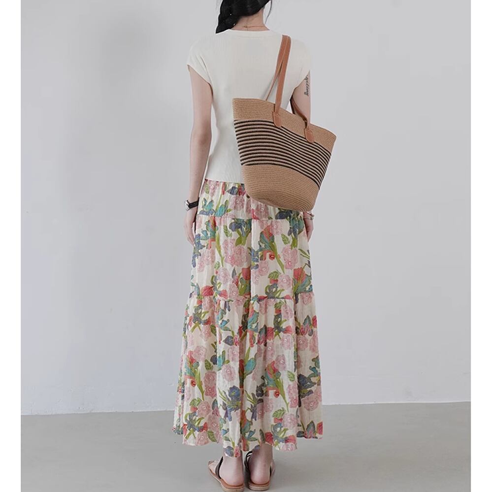 レディース 花柄 スカート ロング丈 フレンチレトロ ティアードスカート AS11055