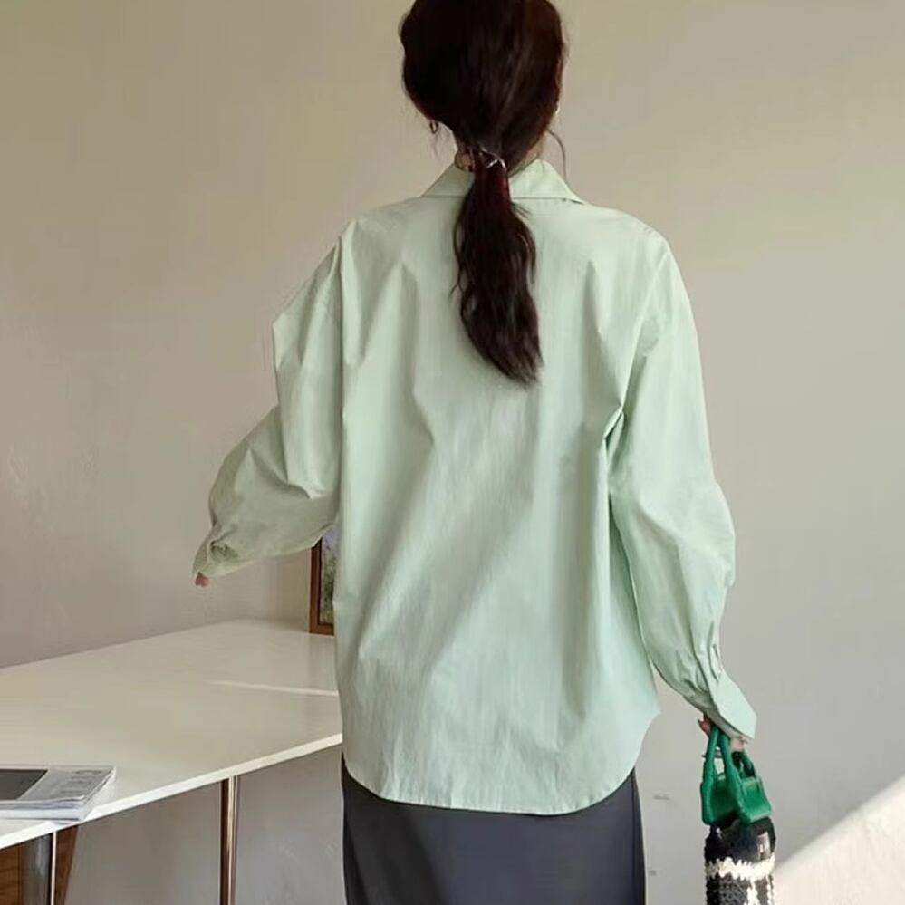 レディース 長袖 シャツ シンプル オーバーシルエット グリーン ブルー ピンク AS11082