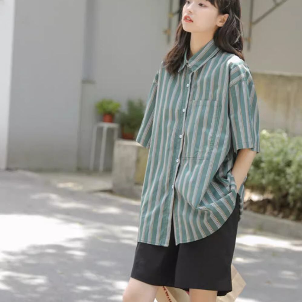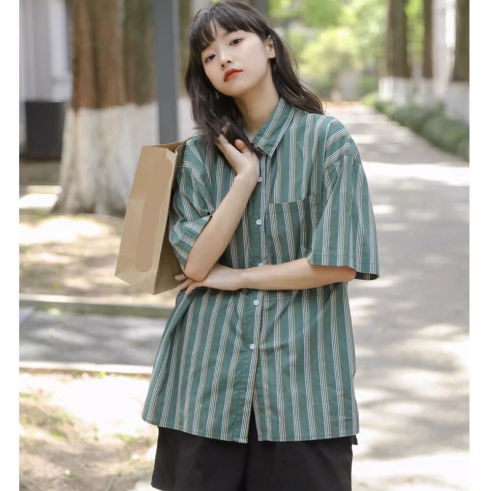 メンズライクでお洒落なストライプ柄の半袖シャツ。
